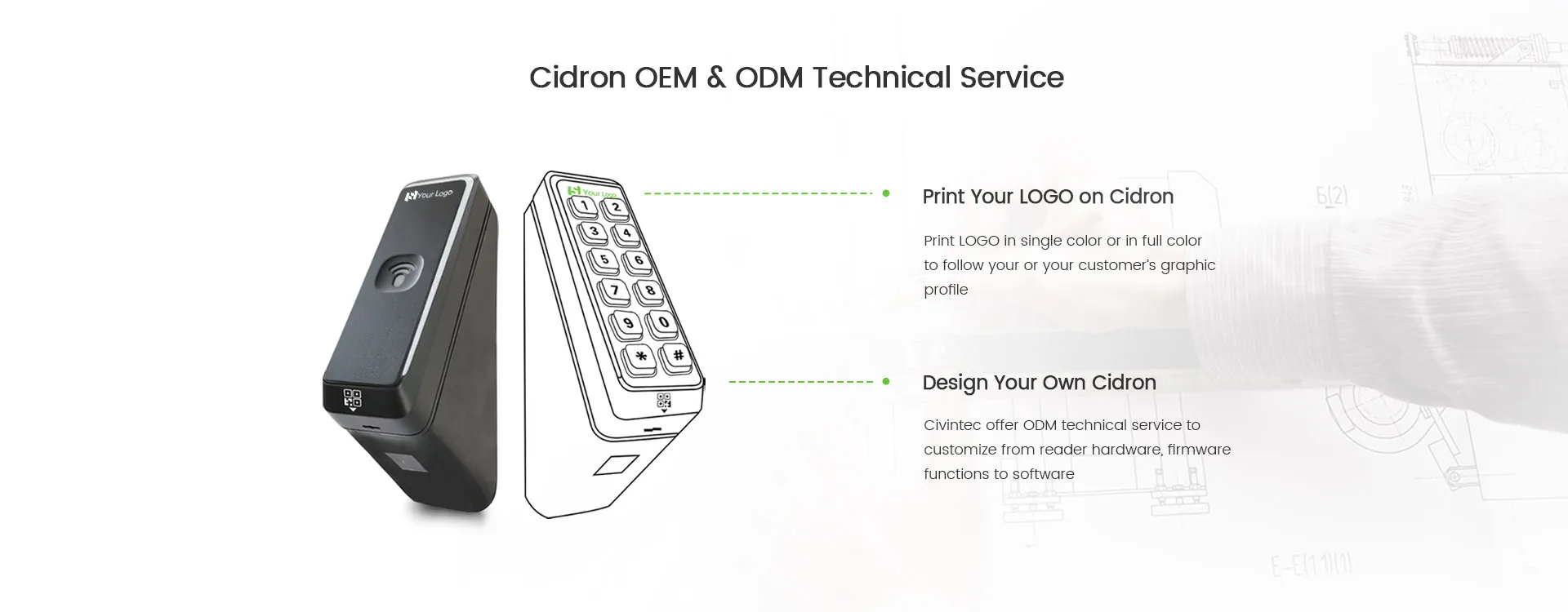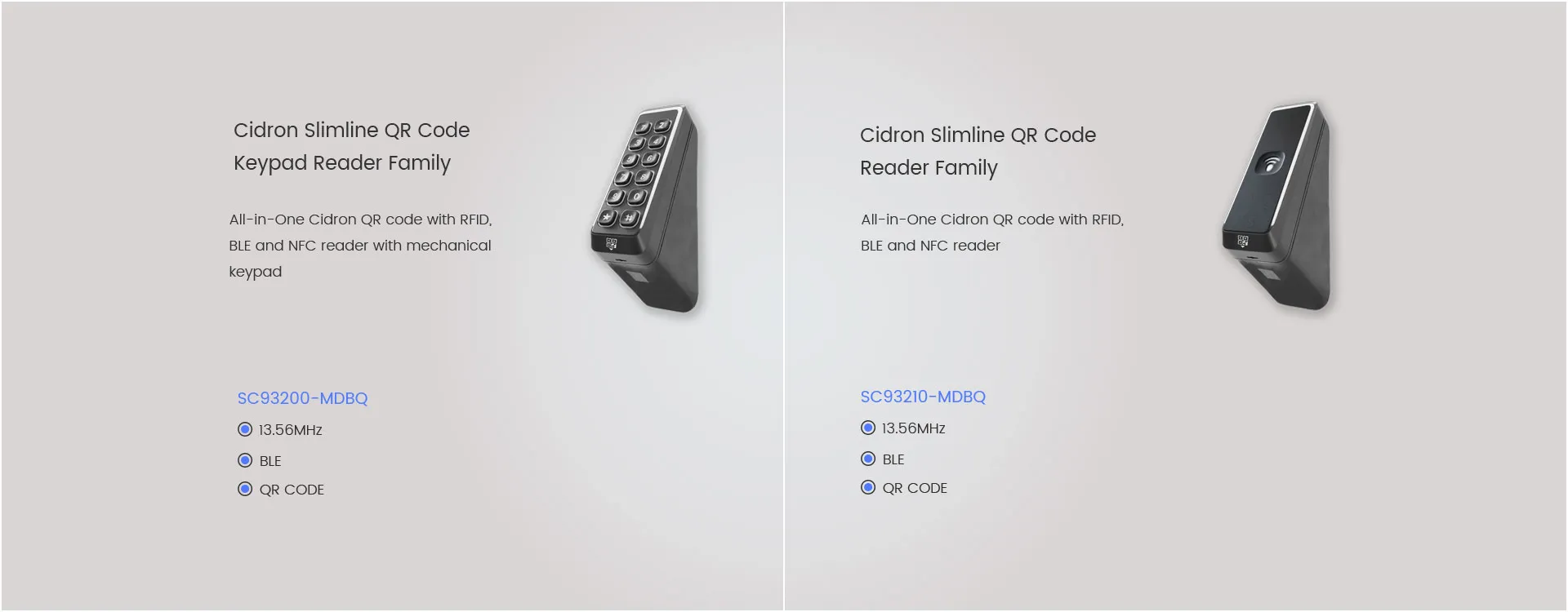 Cidron reader supports 13.56MHz technologies, MIFARE Classic®, MIFARE PIus® and DESFire®EV1/EV2/EV3 combined with 125KHz technologies, which makes it ideal to use where several card populations with different RFlD-technologies or frequencies should be used at the same time.
